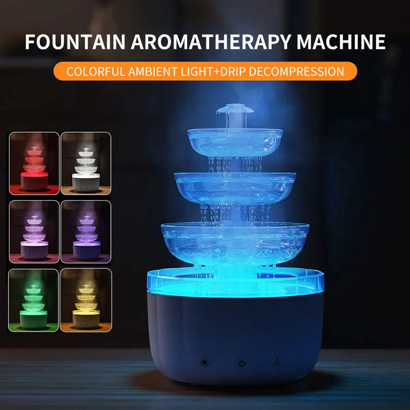 2025 Creative Fountain Humidifier 7-Color Device Atmosphere Light Raindrop Oil Diffuser Aromatherapy Machine Air Humidifier